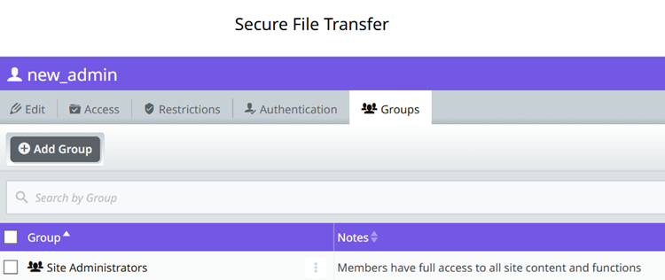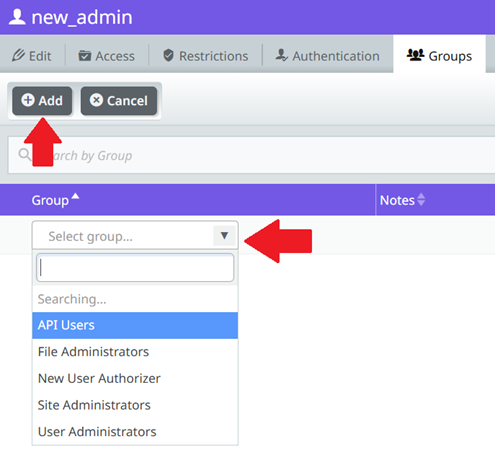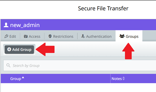 4. Click the Groups tab on the top and then Add Group button to the left.